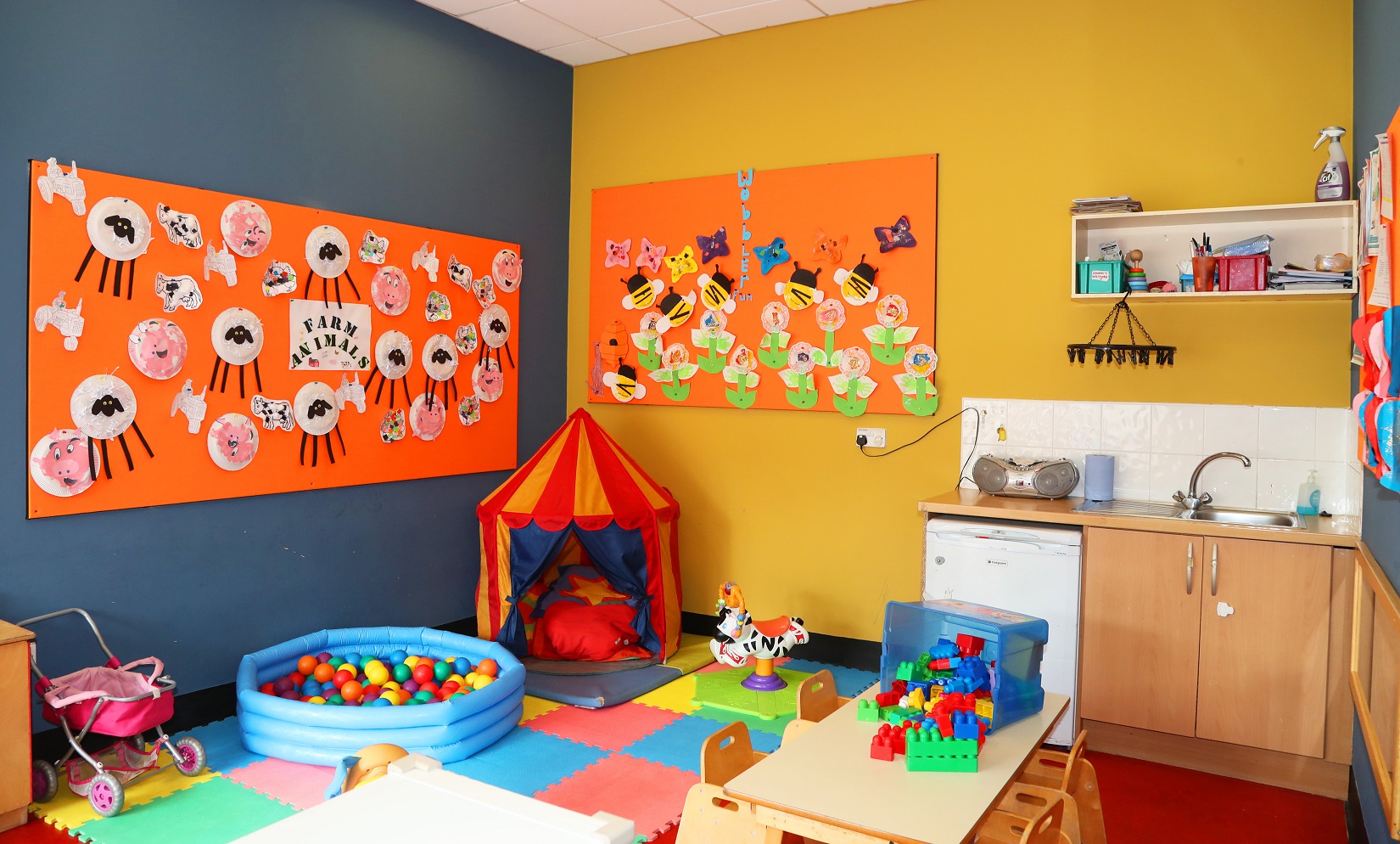 Our Wobbler Room caters for children between the ages of 1 to 2.5 years and has varying equipment to stimulate their developing needs and are age & stage appropriate. The Wobblers have an action packed day filled with lots of fun. We incorporate the Aistear framework into our daily routine. Communicating, well- being, identity & belonging and exploring & thinking are identified in our everyday curriculum.
